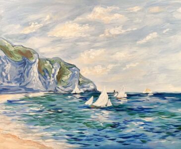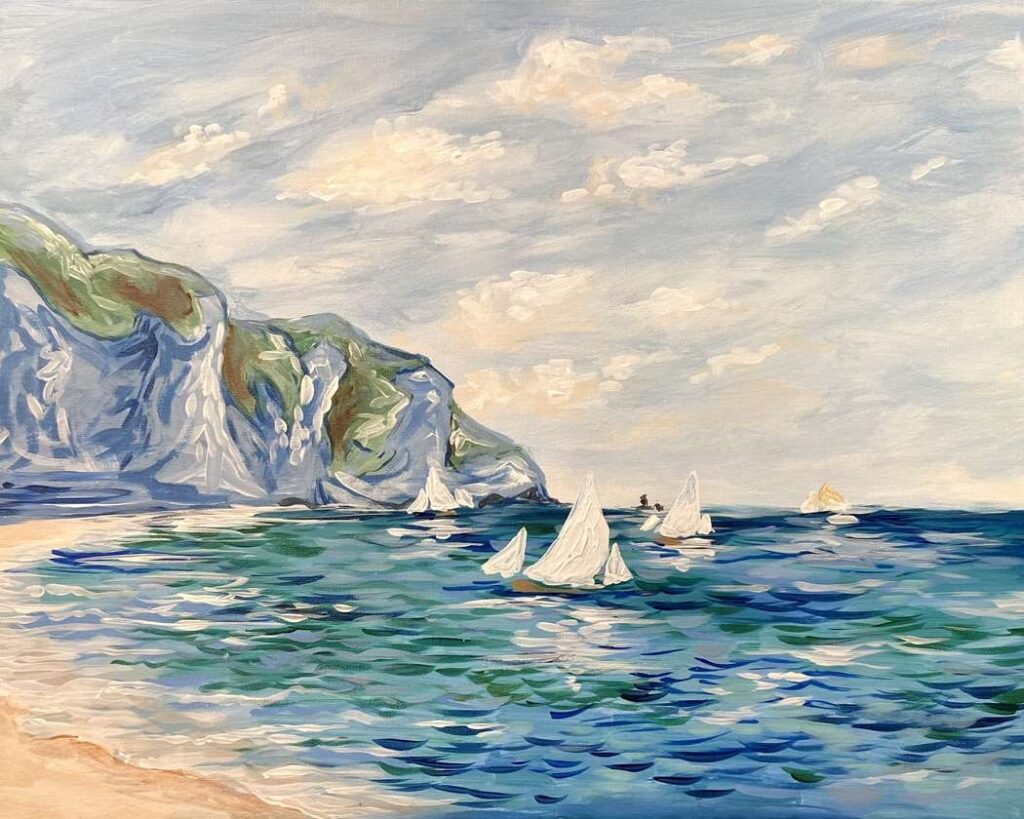 A lovely coastal scene inspired by Claude Monetβs πππͺπ§π§π΄ π’π―π₯ ππ’πͺππ£π°π’π΅π΄ π’π΅ ππ°πΆπ³π·πͺπππ¦, painted in 1882.