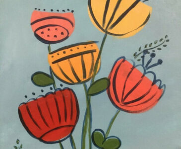 Come in and get a little Brush Crazy! Scandi Flowers is our featured painting. We have step by step instructions, with pictures and words for you to follow along as you customize your very own art project!