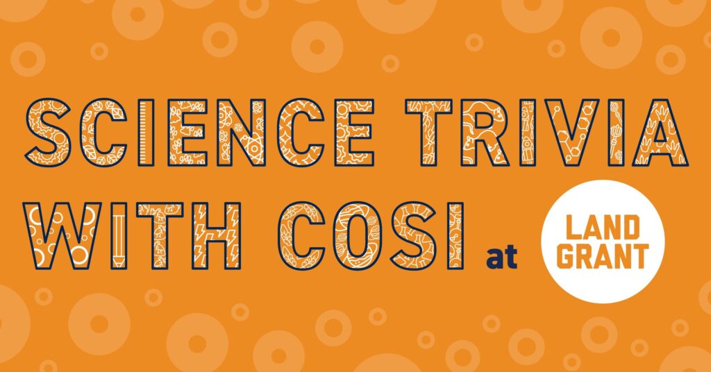 Put your science smarts to the test at Science Trivia Night with COSI! Join us on the first Wednesday of each month for an evening of mind-bending questions, themed rounds, and plenty of nerdy fun.