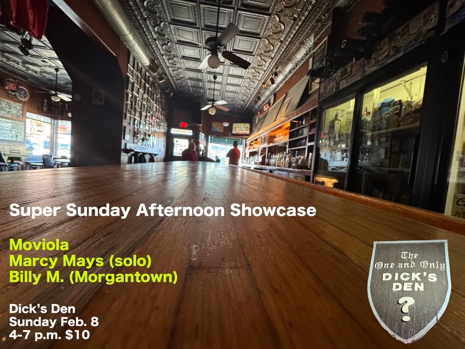 Avoid the BIG GAME build-up and stop by Dick's for an early evening of great music and zero football hype. Billy M. visits from Morgantown with an excellent trunk of Prine-inspired tunes at the ready. Columbus legend Marcy Mays (Scrawl) will share a rare solo set, and Moviola plays a rare hometown show with songs from their just-released 11th album, Earthbound. Just say no to the sports industrial complex!