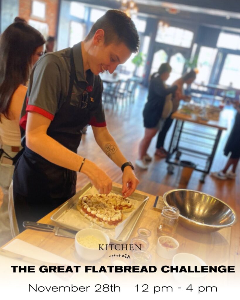 ake off that turkey coma and bring your whole crew to our Flatbread Challenge the day after Thanksgiving! This friendly competition is all about rolling, chopping, and topping your way to the grand prize. It’s the perfect way to get out of the house, share some laughs, and enjoy a deliciously fun afternoon together! The winning team will receive a $100 gift card for The Kitchen!