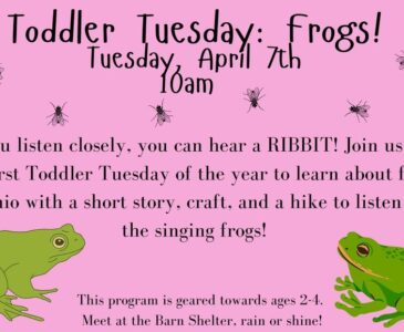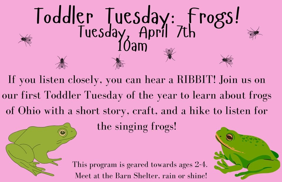 If you listen closely, you can hear a RIBBIT! Join us on our first Toddler Tuesday of the year to learn about frogs of Ohio with a short story, craft, and a hike to listen for the singing frogs!