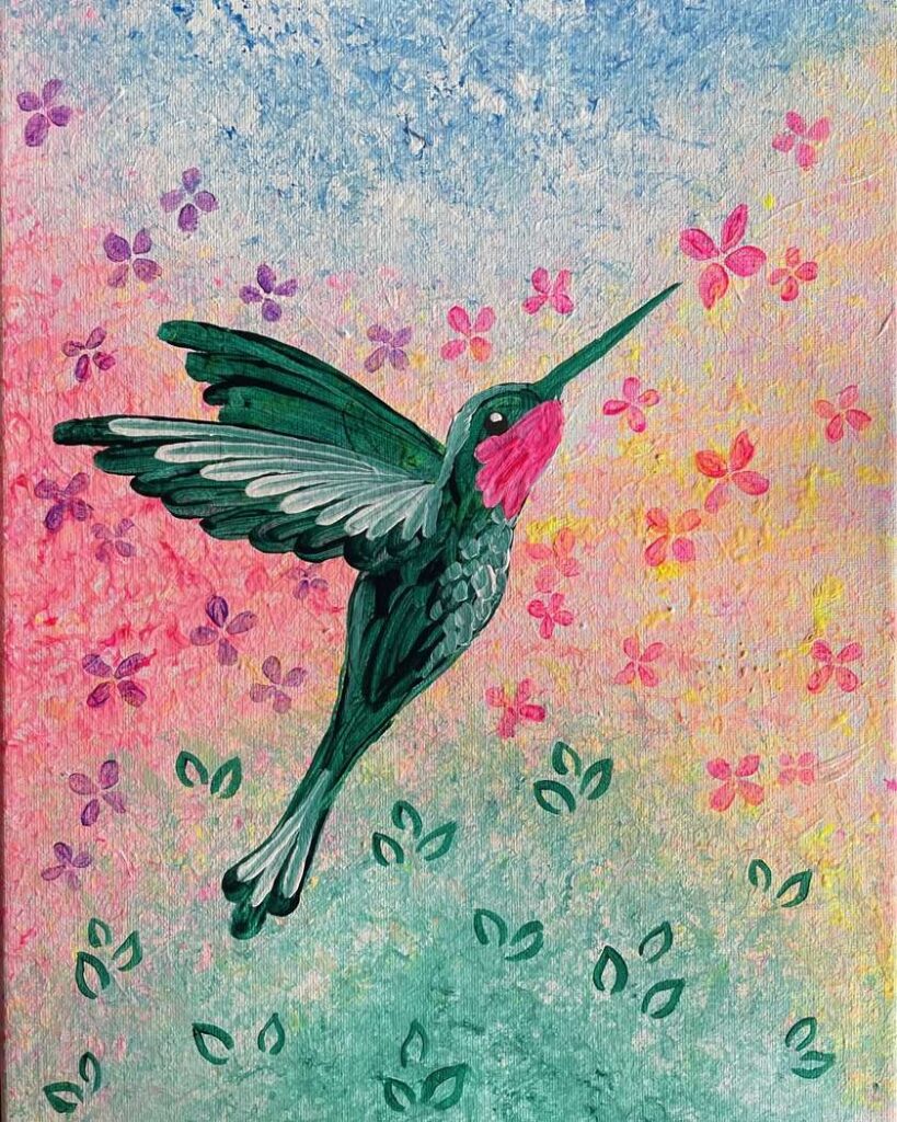 This Anna’s hummingbird is busy in his lilac garden. This painting is perfect for spring!