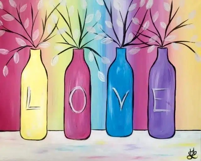 Grab your seat today for our Wine Down Wednesday event! This colorful floral Painting “Bottles of Love” led by the talented, local artist Amanda! Gather your friends for a girls night out, create a perfect date night or escape into a solo art experience while you sip on your favorite beverage, at one of the unique things to do in Columbus. So leave your cares at the door and dive on into the best paint and sip party in town!