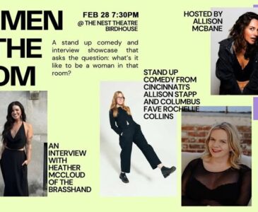 A stand up comedy and interview showcase that asks the question: what's it like to be a woman in that room? Stand-up from Cincinnati's Allison Stapp and Columbus fave Rochelle Collins followed by an interview with Heather McCloud of The Brasshand. Hosted by Allison McBane! This will be LIVE at our 2643 N High St location, upstairs in the Birdhouse! *The Nest Theatre is now a cashless operation. Payment will be handled by card, or exact change. Thanks! Looking to learn stand-up comedy the Nest way? We build off principles learned in our Level 1 Improv Class. Once you’ve completed Level 1 you will have met the prerequisite of our seasonal stand-up class!