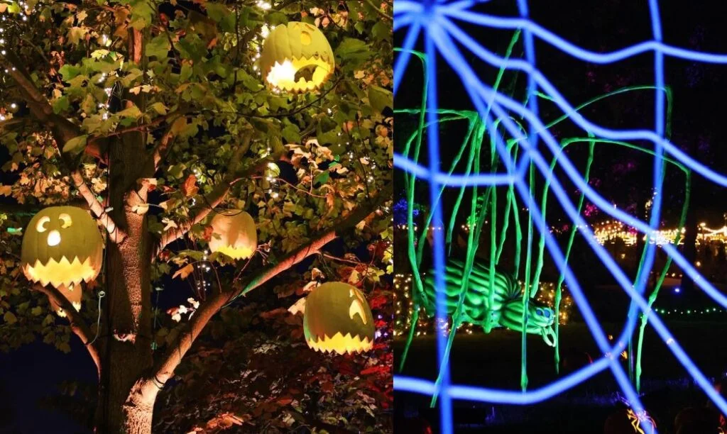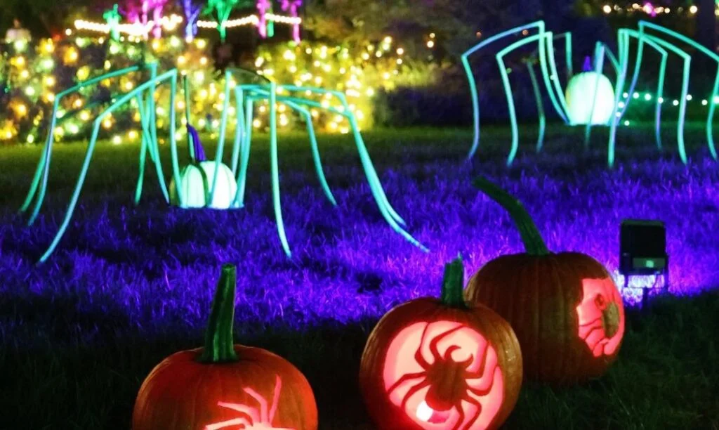 If Harvest Blooms is the wholesome daytime event, Pumpkins Aglow is the evening version with a little extra drama. On select October nights, more than 700 hand-carved pumpkins light up the Conservatory in themed displays: pirates, spiders, mermaids, aliens — basically, all the things that terrified you as a child, now glowing cheerfully in pumpkin form.