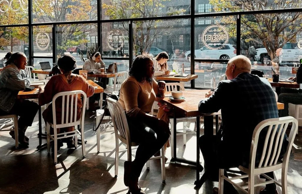 If you’re all about the good vibes when looking for a WFH coffee shop, Global Gallery is going to check all the boxes. The coffee is fantastic, all while being surrounded by hundreds of different fair-trade art pieces available for purchase that were created by over 1,500 artists worldwide. Even if you don’t buy anything, the vibe from all of the creativity that surrounds you will surely rub off on you during your brainstorming meetings.