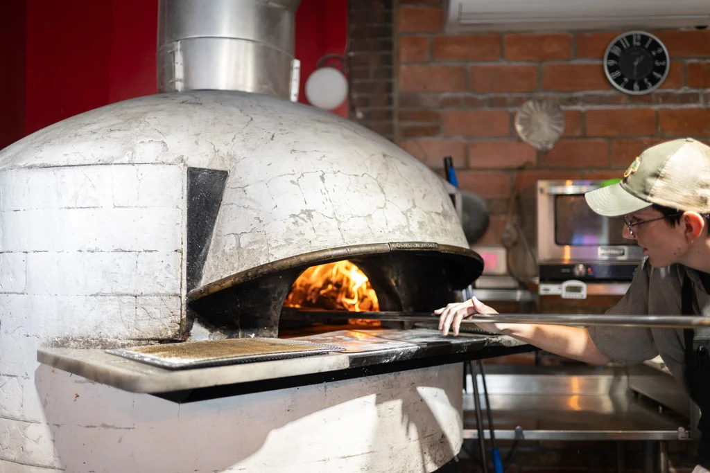 You can watch the whole process, from the dough stretch to the blistering of perfect wood-fired crust. That’s fun on a date. It’s also great when you’re solo too, because there’s conversation to be had on all sides of the counter. Owner and pizza aficionado, Nick G., has truly created a welcoming, community-driven hangout in every sense of the word. In fact, much of the decor you see was crafted by Nick himself, using (you guessed it) locally sourced materials from friends and family.