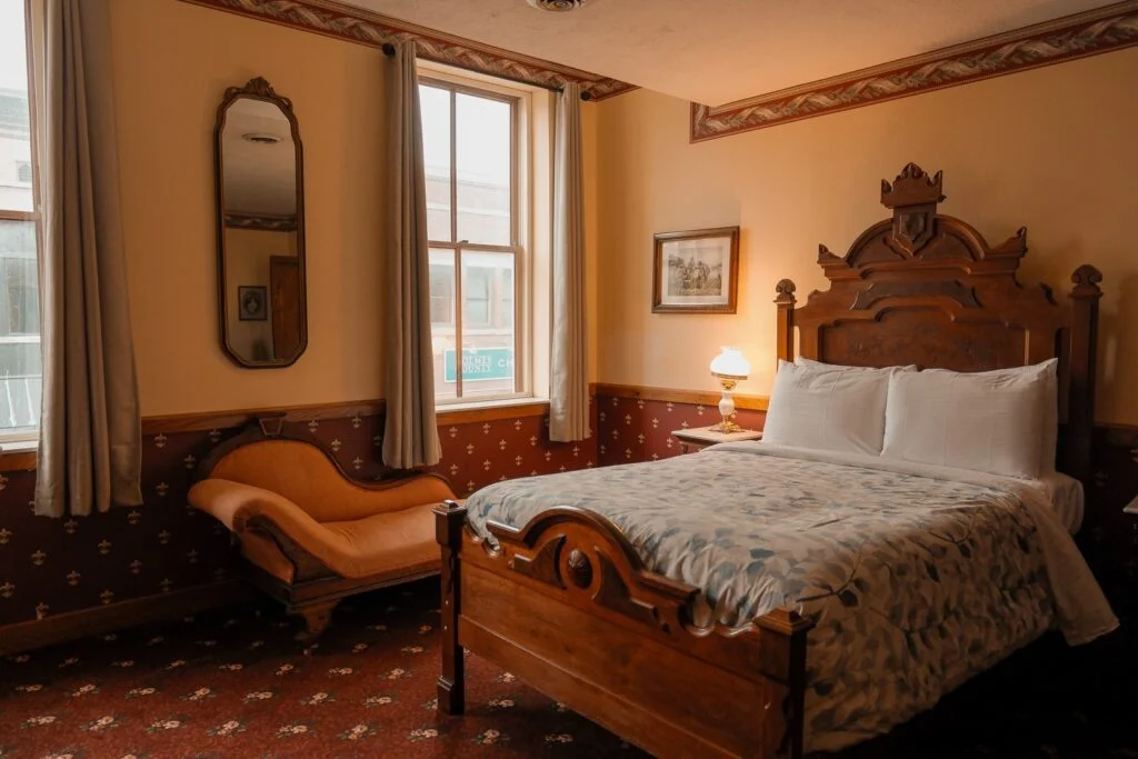 The vibe is full-on Victorian charm. The decor and amenities are kept as close as possible to the original style, which means you get all the cozy, old-school character people pay extra for in big-city boutique hotels… except you’re in downtown Millersburg, in the heart of Amish Country, and it can be a pretty affordable escape (around $100 a night).