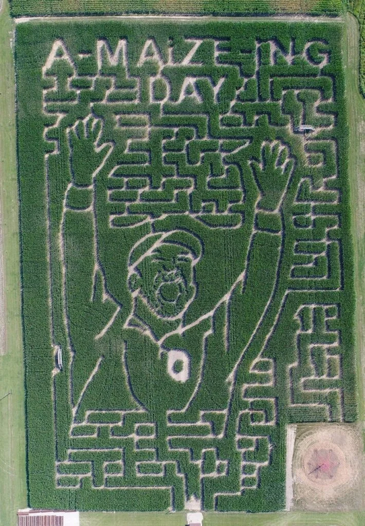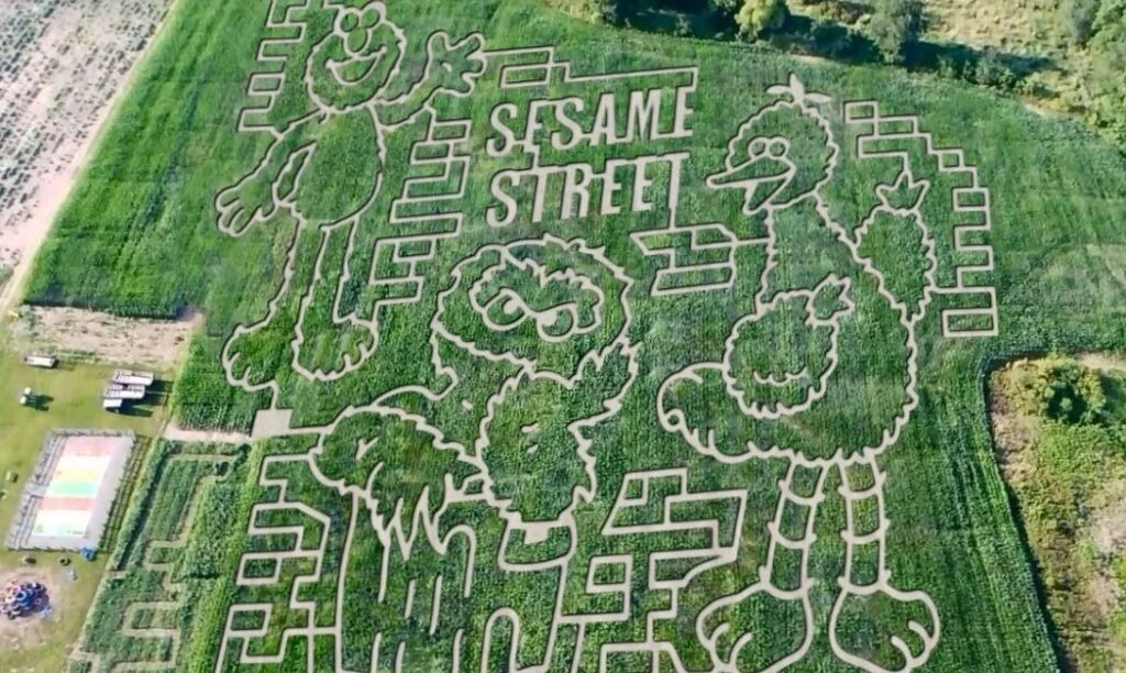 Elmo, Cookie Monster, and Big Bird… all in corn form. Van Buren Acres has some kind of surgeon-level precision when it comes to corn mazes. Every year their designs are so clean it looks like they Photoshopped the field.