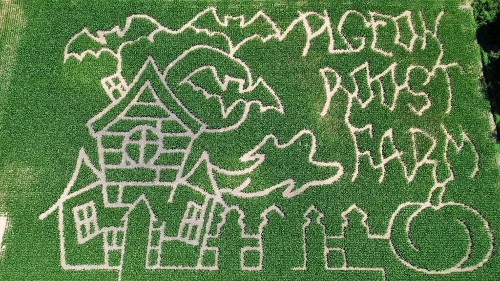 If fall is your Halloween season, Pigeon Roost is your place. This year’s maze has bats, a haunted house, a giant pumpkin, and even a spooky moon woven into the design.