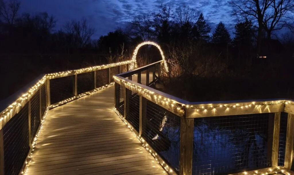 Inniswood is already one of the prettiest Metro Parks in Central Ohio, but in December it turns into a glowing fairytale. The trails light up at dusk, casting warm colors across the trees, bridges, and gardens. It’s peaceful, calm, and the total opposite of the big loud drive through shows.