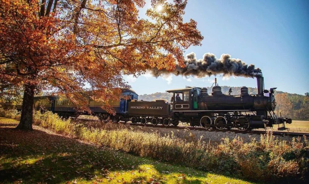 For weekend riders, there’s often a special stop at Robbins Crossing Historical Village, a time capsule of Southeastern Ohio from the mid 19th century. It’s the perfect place to stretch your legs, soak up some history, and pretend you’re in an old-timey romance movie. Honestly, can you imagine a better start to your fall date than watching the leaves of the Appalachian foothills glow in shades of red and gold?