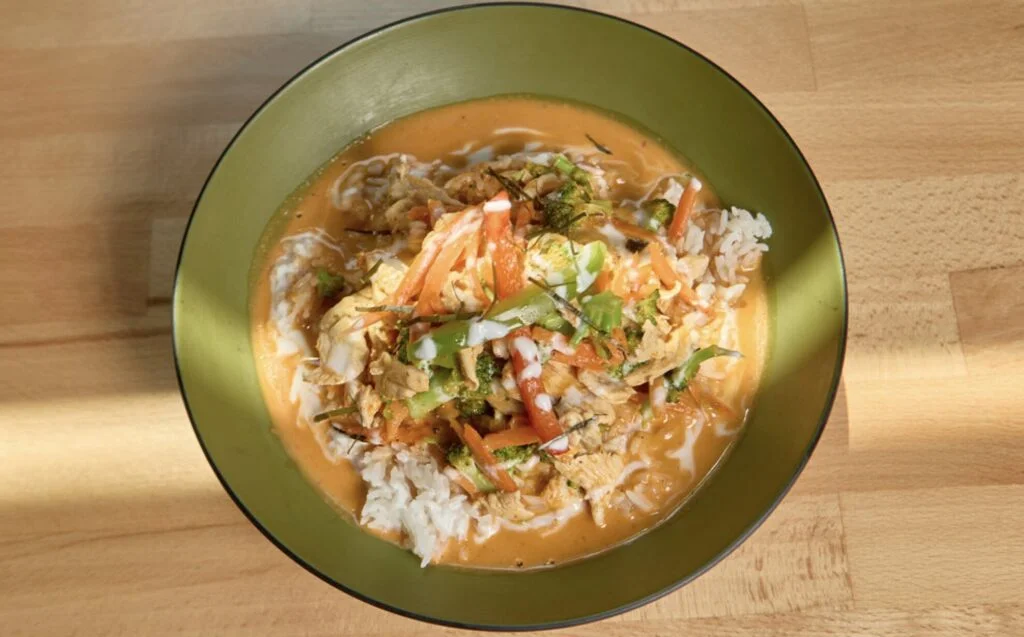 It’s loaded with crispy chicken, kimchi, cucumbers, and rice. It’s equal parts comforting and craveable, and, oh yeah… it’s only SIX BUCKS.