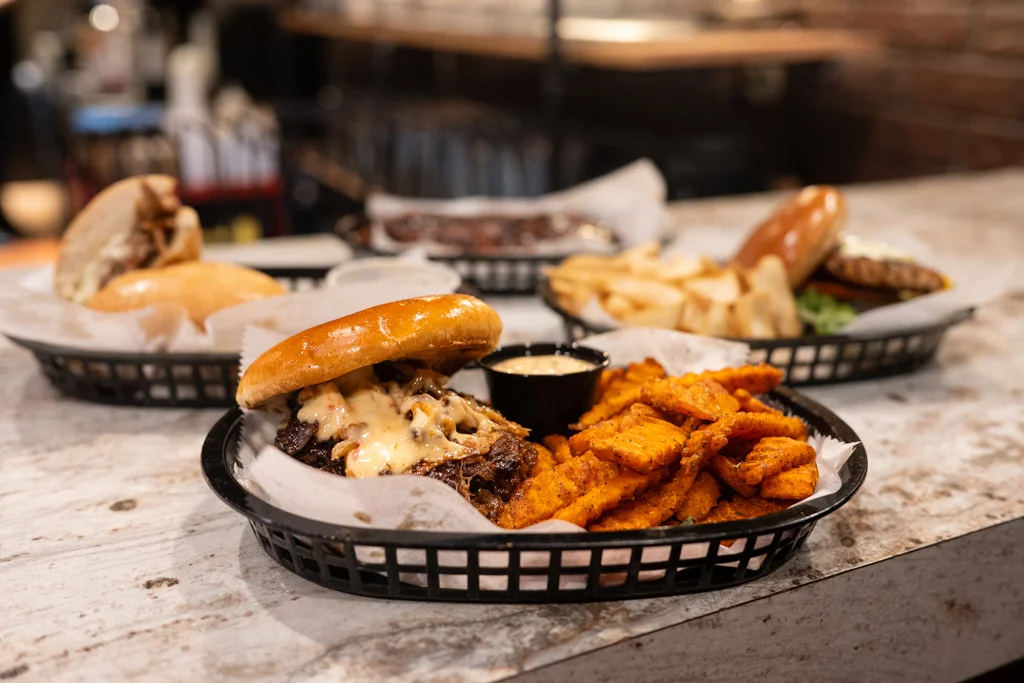 Enter the SLAB Burger. It’s their #1 seller, and for good reason. At first glance you’ll be questioning if it is actually a burger but just you wait until you take a bite. Hiding under a massive stack of BBQ baby back ribs is a juicy burger patty. It’s truly the combo you didn’t know you needed. From here, it is topped with onion straws and their signature SLAB sauce. *Chef’s kiss.* Honestly, now we’re wondering why this isn’t the standard everywhere.