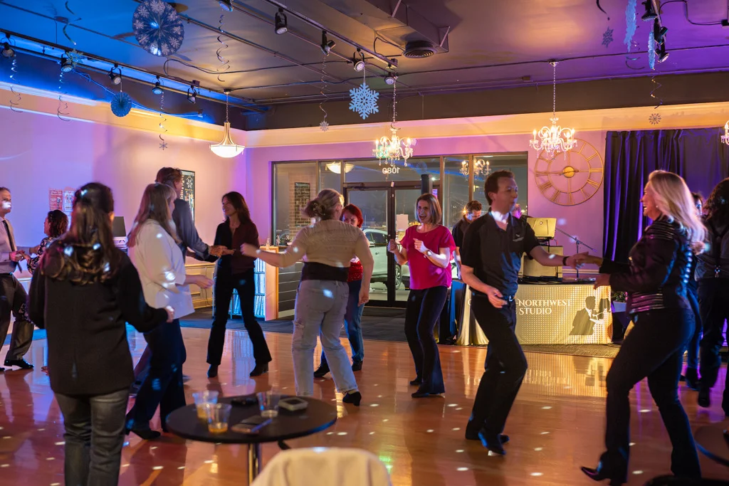 Columbus Northwest Dance Studio hosts 3 to 5 dance parties a month, usually lasting about an hour and a half. Each party includes a short dance lesson, so no one is ever thrown into the deep end.